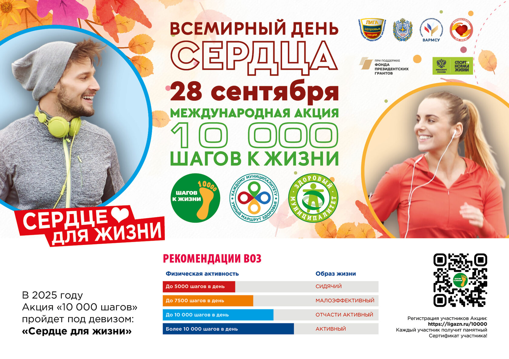 28 сентября 2025 года состоится Всероссийская акция «10 000 шагов к жизни», приуроченная к Всемирному дню Сердца (29.09.2025).